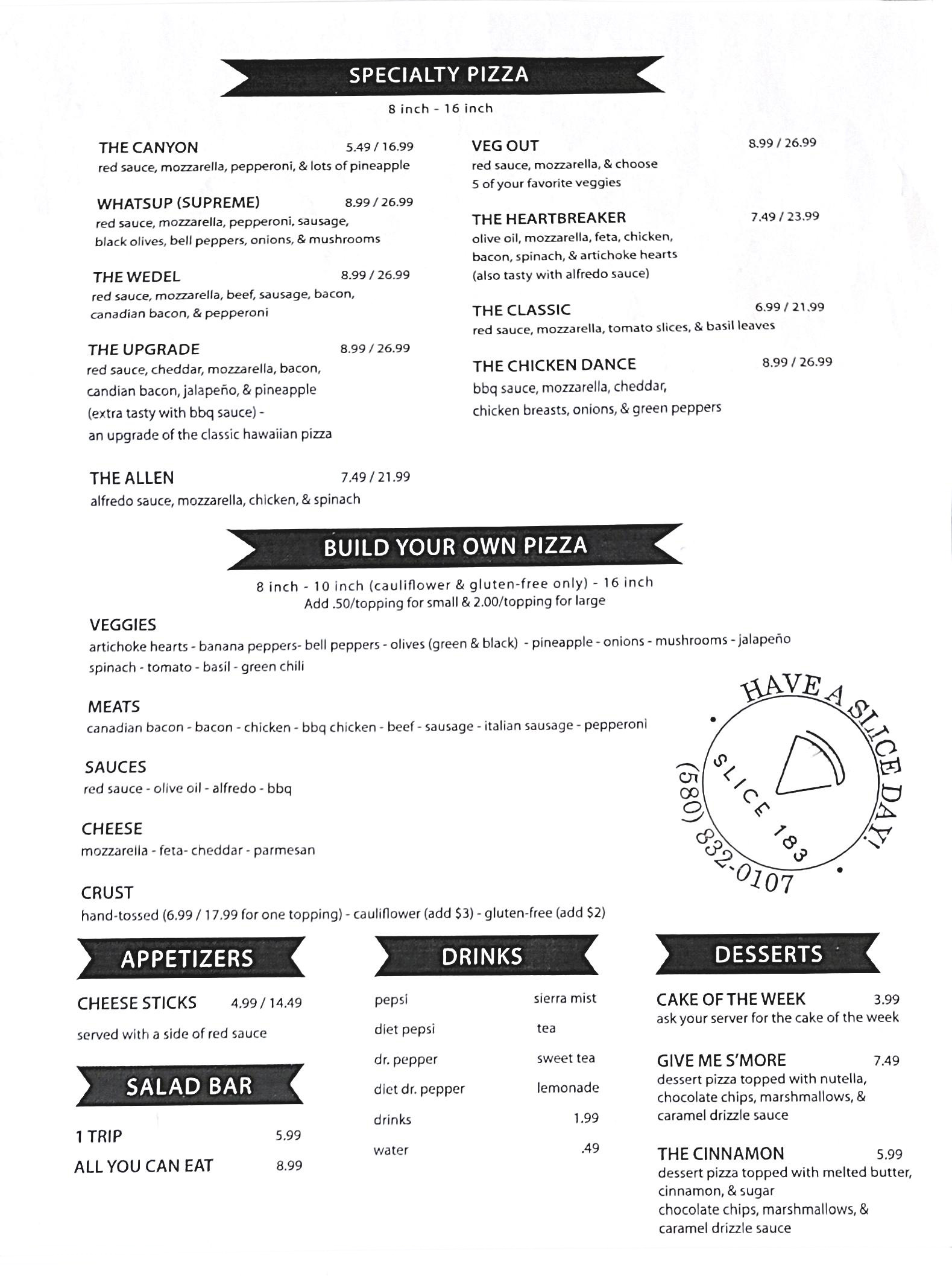 Please Note: Not all eateries are listed. And not all menus are listed.
